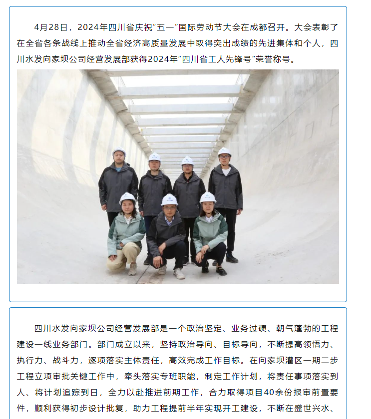 喜報(bào)!向家壩公司經(jīng)營發(fā)展部獲得2024年“四川省工人先鋒號(hào)”榮譽(yù)稱號(hào)