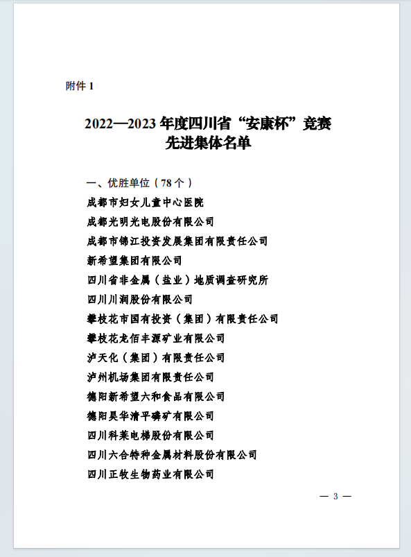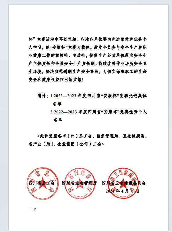喜報(bào)!集團(tuán)榮獲2022-2023年度四川省“安康杯” 競(jìng)賽先進(jìn)集體和優(yōu)秀個(gè)人
