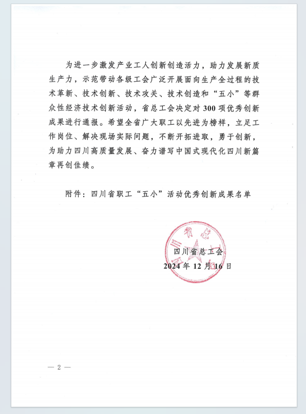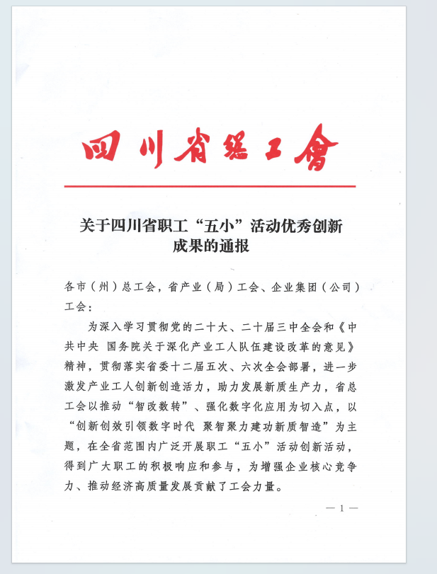 喜報(bào)!集團(tuán)設(shè)計(jì)公司項(xiàng)目在四川省職工“五小”活動(dòng)中獲優(yōu)秀創(chuàng)新成果